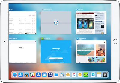 iOS 12 iPad App Switcher, tillgänglig med ett längre svep och håll på Dock, antingen på hemskärmen eller i en app.
