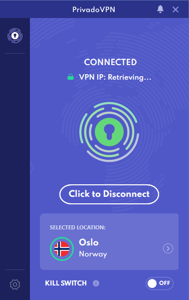 Öppna PrivateVPN:Starta programmet och logga in med dina referenser.