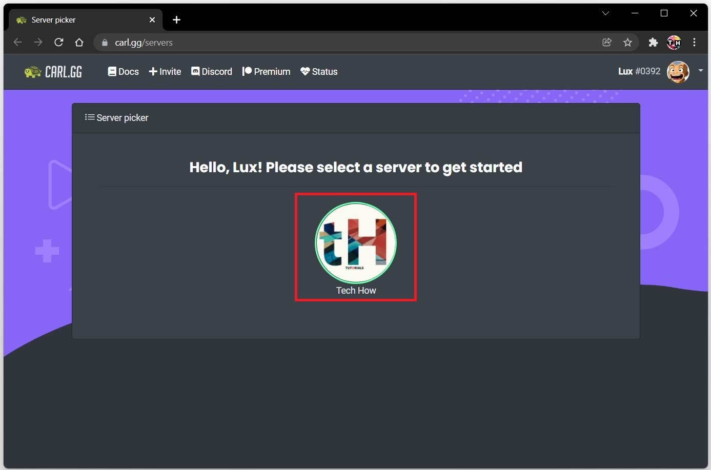 BesökCarl.ggbot-webbplats eller ange carl.gg i din favoritwebbläsare. Efter att ha loggat in med ditt Discord-konto måste du göra detGodkännaboten för att komma åt ditt konto, och efter att ha valt rätt server måste du också ge boten åtkomst till din Discord-server.