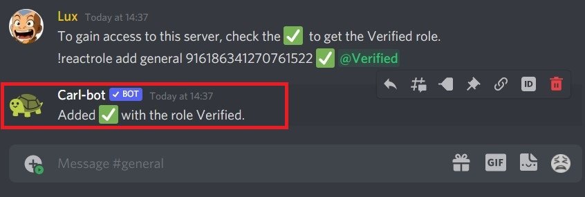 Använd Carl Bot för att skapa ett verifieringssystem