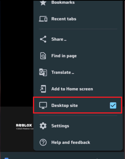 Byt till läget "Skrivbordswebbplats" för att komma åt hela utbudet av Roblox-inställningar.