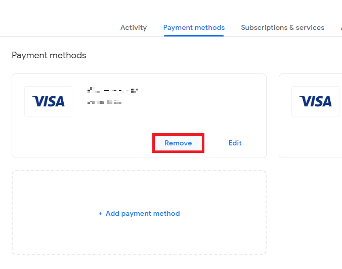För att ta bort en betalningsmetod, klicka på "Redigera betalningsmetoder." Detta gör att du kan ändra eller ta bort någon eller alla betalningsmetoder som är kopplade till ditt Google-konto.