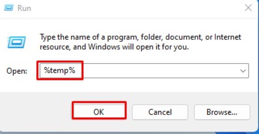 Steg 2: Ange följande kommando i sökrutan ellerKör fönster" %temp%"utan citattecken. Detta öppnar automatiskt filen som din Windows döpte till dinTemp mapp.
