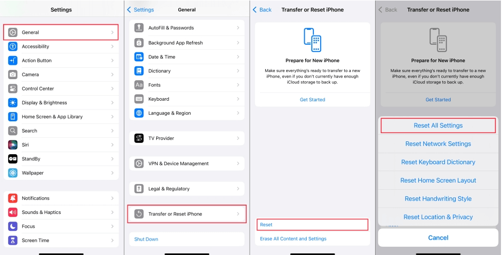 Steg 3. VäljÅterställ > Återställ alla inställningar. Efter det, kontrollera om du nu kan ändra Auto-Lock.