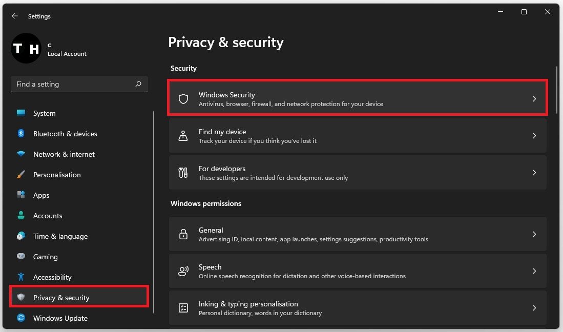 Windows-inställningar > Sekretess och säkerhet > Windows-säkerhet