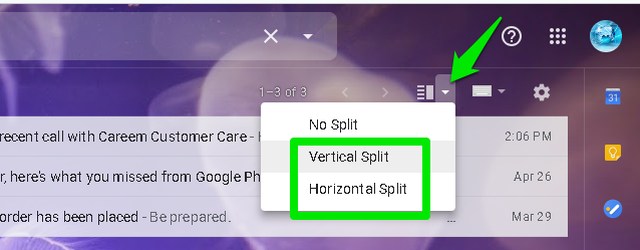 Vertikal delning:I Vertical Split visas förhandsgranskningen på höger sida av meddelandena. Det är utan tvekan mycket mer intuitivt eftersom alla meddelanden och e-postförhandsgranskningen listas sida vid sida och erbjuder enkel rullning. Det fungerar dock bäst på bredbildsskärmar där både inkorg och förhandsvisning kan ses fullt ut. På mindre skärmar måste du sidrulla förhandsgranskning för att läsa hela e-postmeddelandet.