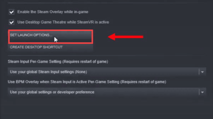 Steg 4 – I egenskaper, navigera till Set Launch Option under fliken Allmänt.