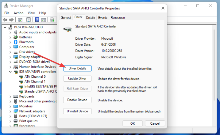 Steg 3. Dubbelklicka sedan på Standard SATA AHCI Controller och klicka på fönstretsDrivrutinsfliken.