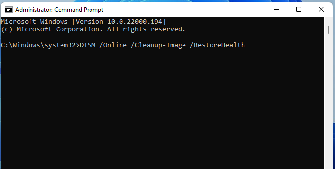 Steg 4. Skriv följande kommando i kommandotolksfönstret och tryck på Retur:DISM.exe /Online /Image-cleanup /Restorehealth