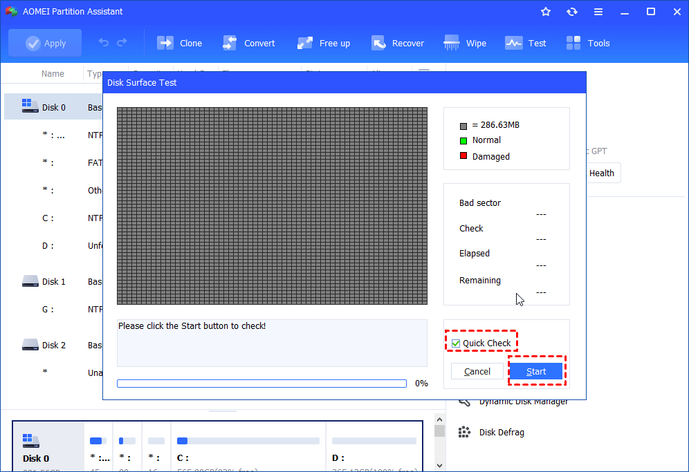 Steg 2. Klicka på Start för att göra yttestet. Du kanske vill bocka för Snabbkontroll för att utföra ett snabbtest.