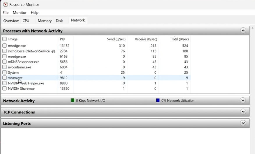 Stäng onödiga uppgifter:Identifiera och stäng applikationer som förbrukar betydande nätverksresurser. Vanliga bovar inkluderar webbläsare, streamingtjänster som Steam eller Discord. Se till att inte avsluta systemkritiska processer.