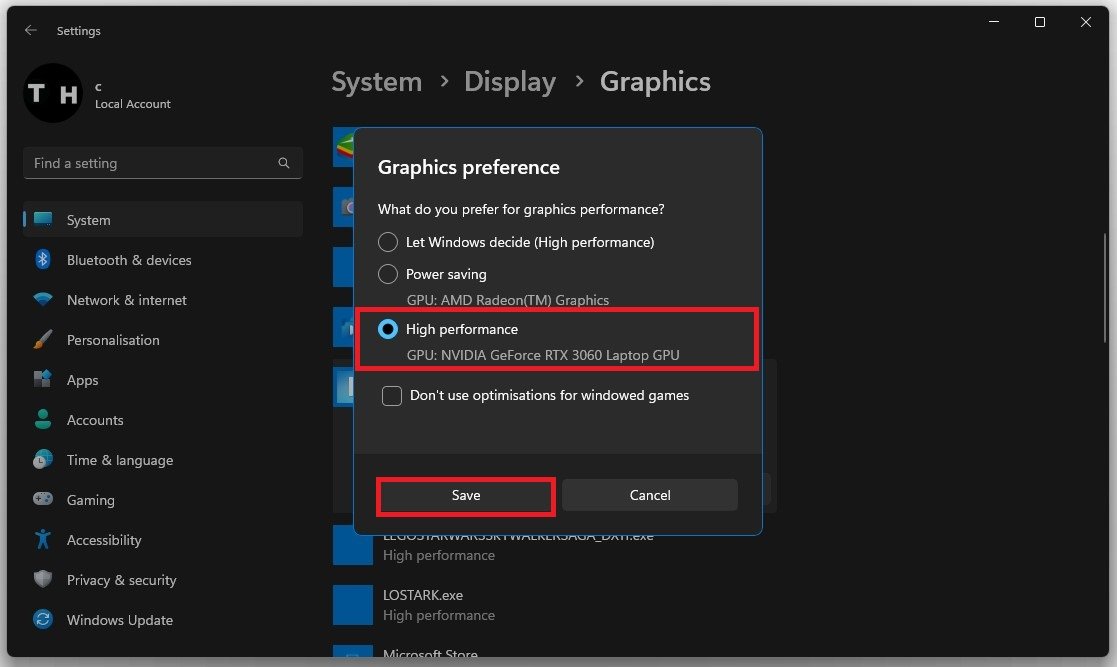 Windows-skärminställningar > Grafik