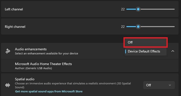 När du klickar på den kan du justera volymreglagen och ändra ljudformatet, som ska ställas in på 48'000 eller 44'100 Hz, beroende på vilket som är högre och tillgängligt.