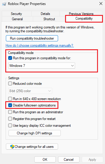 Slutligen, kom ihåg att tillämpa dessa ändringar innan du försöker starta Roblox på din Windows-dator igen.