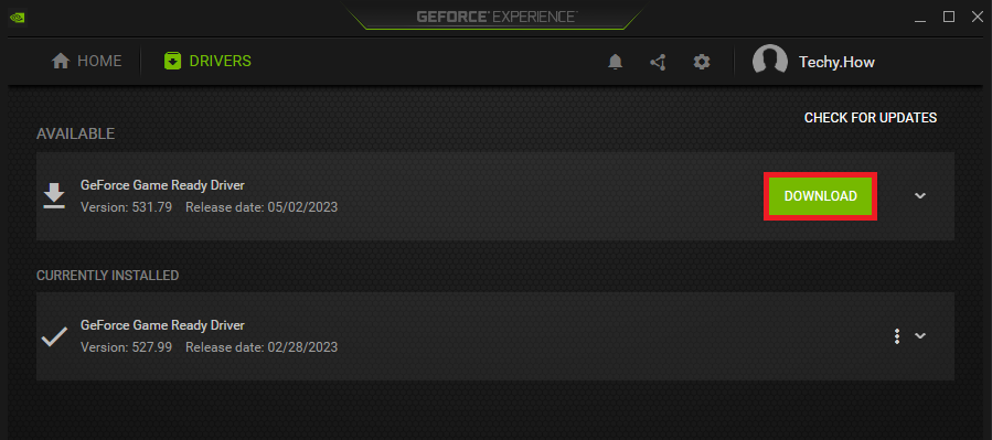 Starta nedladdningen för den senaste drivrutinen för grafikkortet. Observera att detta kan ta några minuter, men uppdateringen bör installeras automatiskt.