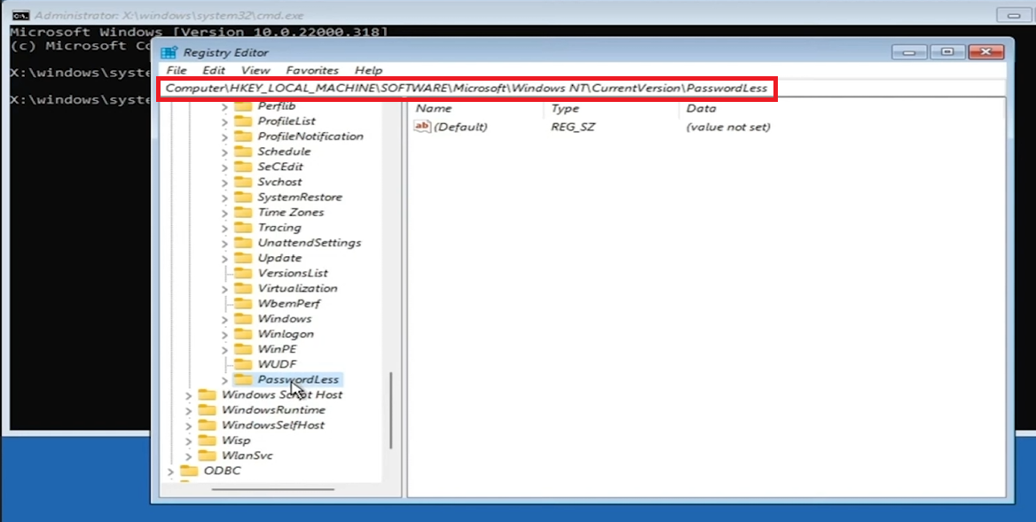Navigera till registersökväg:Gå till ComputerHKEY_LOCAL_MACHINESOFTWAREMicrosoftWindows NTCurrentVersionPasswordLessDevice. Du kan kopiera och klistra in den här sökvägen i adressfältet för snabb åtkomst.