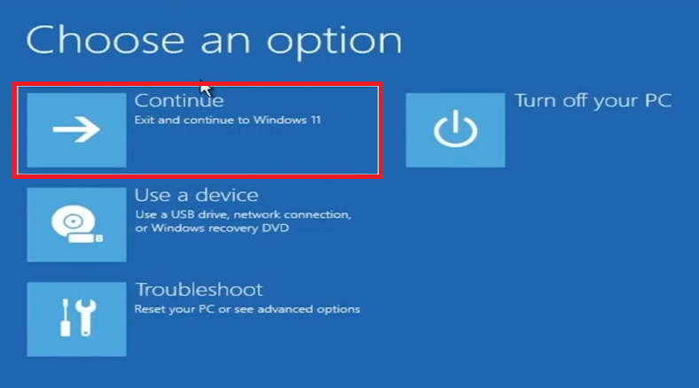 Välj Fortsätt:Klicka på "Fortsätt" för att starta om din dator normalt.