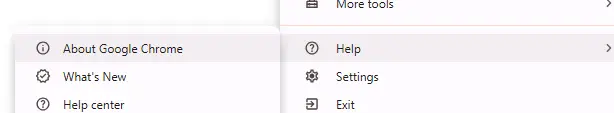 2. Håll musen påHjälpoch klicka påOm Google Chrome.