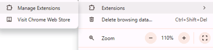2. Håll muspekaren över Extensions och välj Hantera Extensions.