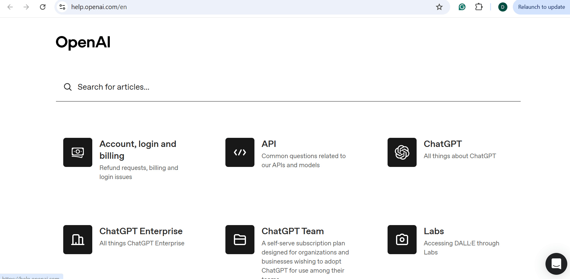 Om problemet kvarstår måste du kontakta OpenAI-supporten.