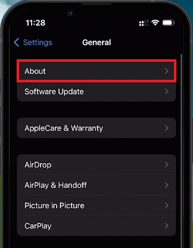 iPhone-inställningar > Allmänt > Om