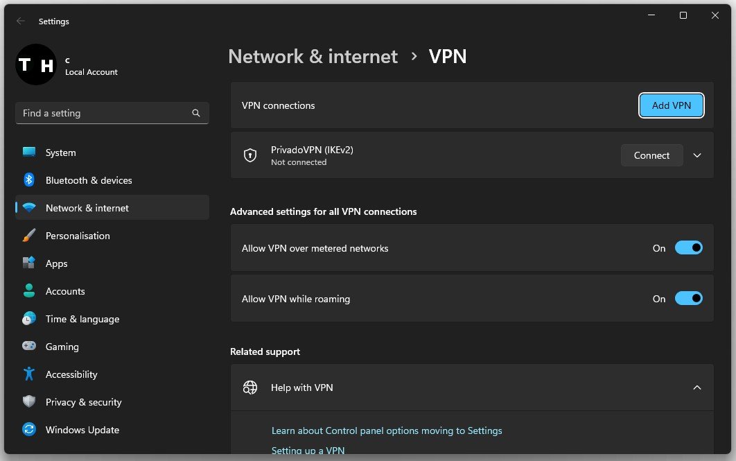 Windows-inställningar > Nätverk och internet > VPN