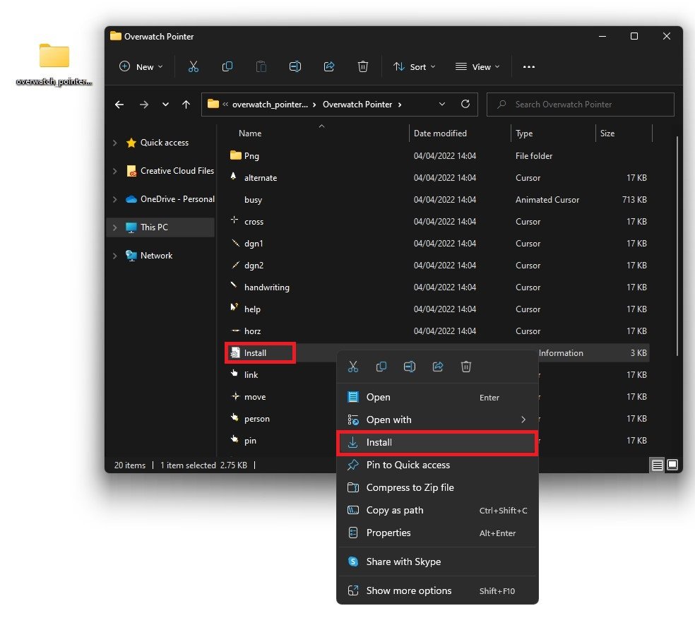 Öppna mappen och du bör se denna Install.inf-fil. Högerklicka på filen och väljInstallera.