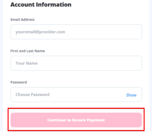 Bild endast för illustration. Design, erbjudanden och detaljer kan skilja sig åt. Klicka på bilden för aktuell info.- Fyll i din e-postadress, för- och efternamn och välj ett lösenord. Klicka sedan på "Fortsätt till Säkerhetsbetalning.”