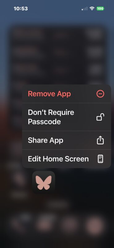 Att ta bort applåset är lika enkelt som att aktivera applåset. Tryck bara och håll på den låsta appen och välj "Kräv inte Face ID" eller "Kräv inte lösenord" från snabbmenyn som visas, beroende på dina specifika säkerhetsinställningar för enheten.