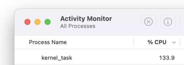På väg att upptäcka detta är, förutom att din Mac är i direkt solljus och känns varm vid beröring, prestandan är särskilt långsam, och om du går in i Activity Monitor kommer du ofta att upptäcka att kernel_task är den dominerande processen. Det kan bero på att kärnan försöker kyla ner Mac och strypa CPU för att förhindra att Macen överhettas, så det är dags att ta itu med värmen.