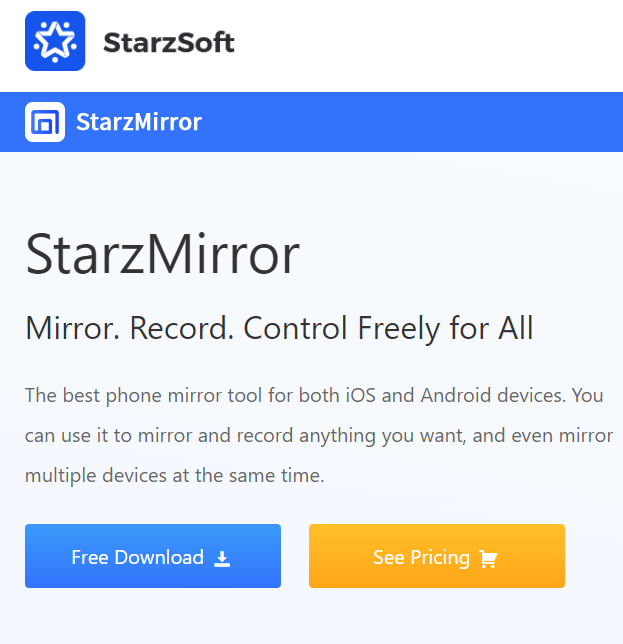 1. Besök tjänstemannenwebbplatsavStarzMirroroch installera programmet på båda enheterna.