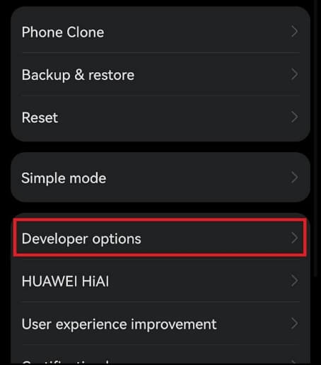 Steg 4.Gå tillbaka till huvudmenyn Inställningar och välj "Utvecklaralternativ."