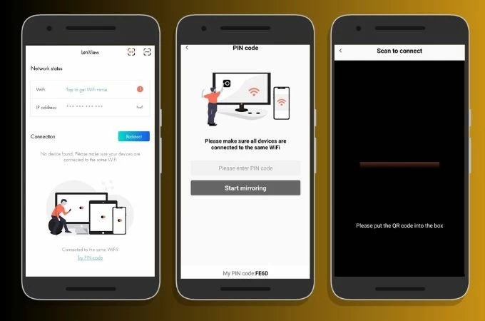 Om apparna ovan inte fungerade och WiFi-anslutningen är tillgänglig kan du ha denna gratis app för skärmspegling som vi rekommenderar starkt. LetsView-appen är en av de bästa apparna för skärmspegling och streaming som gör att du trådlöst kan visa din Android-skärm på en större skärm. Du behöver inte casta telefonskärmen till PC via USB, för med bara din internetanslutning kan du smidigt utföra skärmspeglingen.
