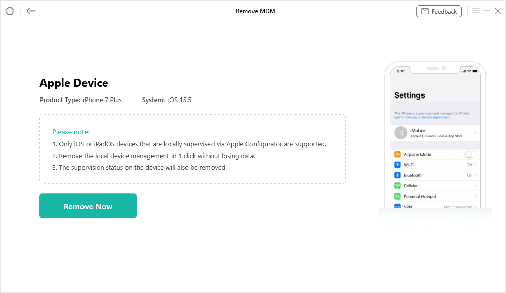 - Ta bort lokal enhetshantering från din iPhone eller iPad utan att förlora några data enkelt och säkert.