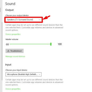 Steg 3:Se tillHögtalare(7.1 Surround) är vald som standardutgångsenhet.