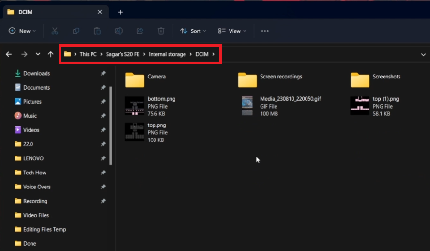 Starta nu filutforskaren på din PC och navigera till "Den här datorn" eller "Den här datorn". Din Android-enhet bör vara synlig bland de tillgängliga enheterna. Öppna enhetsmappen för att komma åt din Android-lagring. Leta efter mappen "DCIM", som är standardlagringsplatsen för mediefiler. Dra och släpp dina önskade foton från din dators katalog till den här DCIM-mappen för att slutföra överföringen.