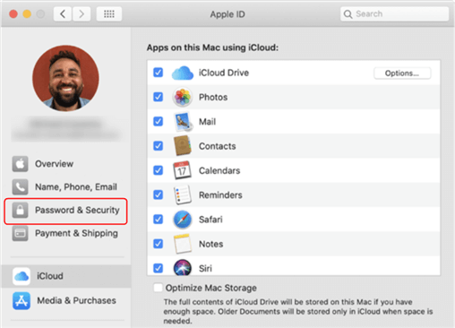 Steg 4. Välj fliken Säkerhet och klicka sedan på Ändra lösenord bredvid Apple ID-lösenord.