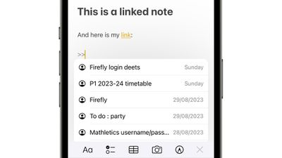 Notes-appen erbjuder också ett extra, snabbare sätt att lägga till länkar: Att skriva två större än symboler (>>) i en anteckning anropar en lista som innehåller dina sex senast ändrade anteckningar, och genom att trycka på en läggs en länk till den anteckningen direkt.