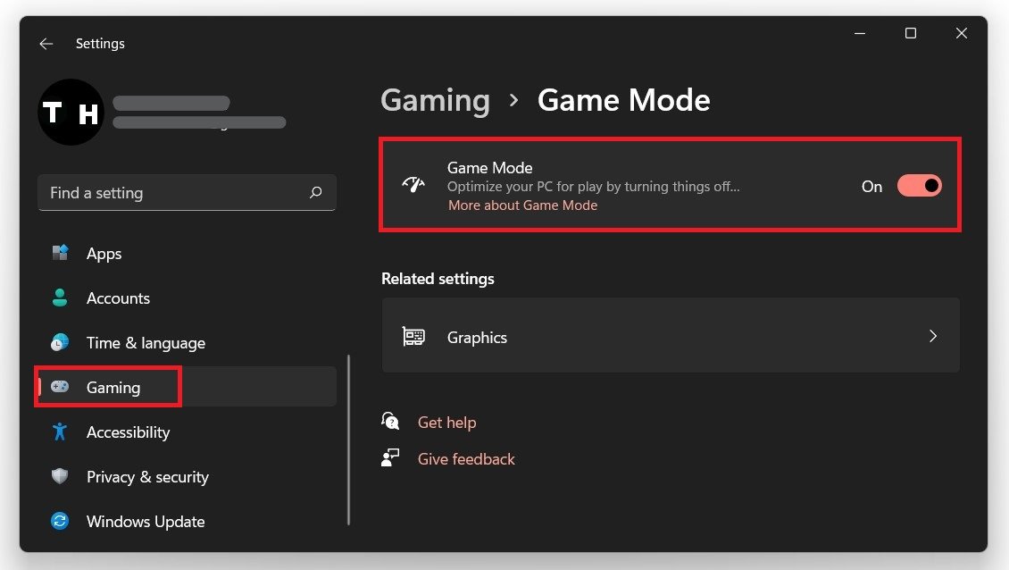 Efter att ha säkerställt att din GPU-drivrutin är uppdaterad öppnar du fönstret för systeminställningar. Navigera tillSpelandesection. UnderSpelläge, kan du aktivera eller inaktivera spelläge på din dator. I teorin bör spelläget förhindra Windows Update från att utföra drivrutinsinstallationer och skicka omstartsmeddelanden och hjälpa till att uppnå en mer stabil bildhastighet under spelet.