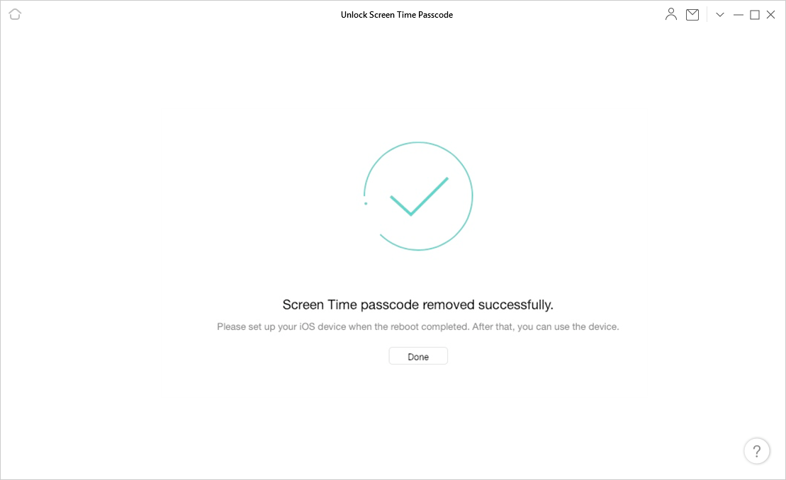 Steg 8: När upplåsningen är klar återställs din iPhone. Skärmens lösenord kommer att tas bort. Tryck på knappen "Klar".