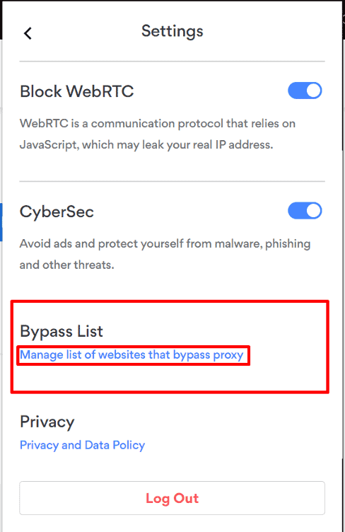 Om du bara planerar att använda VPN-servrar från ett annat land är Bypass-listan en fantastisk funktion att använda!