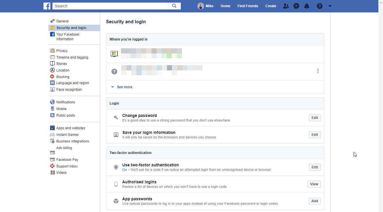 Facebooks tvåfaktorsinställningar kan erhållas via appen på vilken enhet som helst, eller via Facebook i en webbläsare. Navigera till Inställningar > Säkerhet och inloggning så kommer du att se en mängd olika alternativ som du kan ha nytta av. Detta inkluderar att kunna ha tre till fem "betrodda vänner" som Facebook kan skicka information om lösenordsåterställning till om du är utelåst från ditt konto, och att kunna ställa in supersäkra "applösenord" för specifika enheter som du använder Facebook- och Messenger-apparna på.