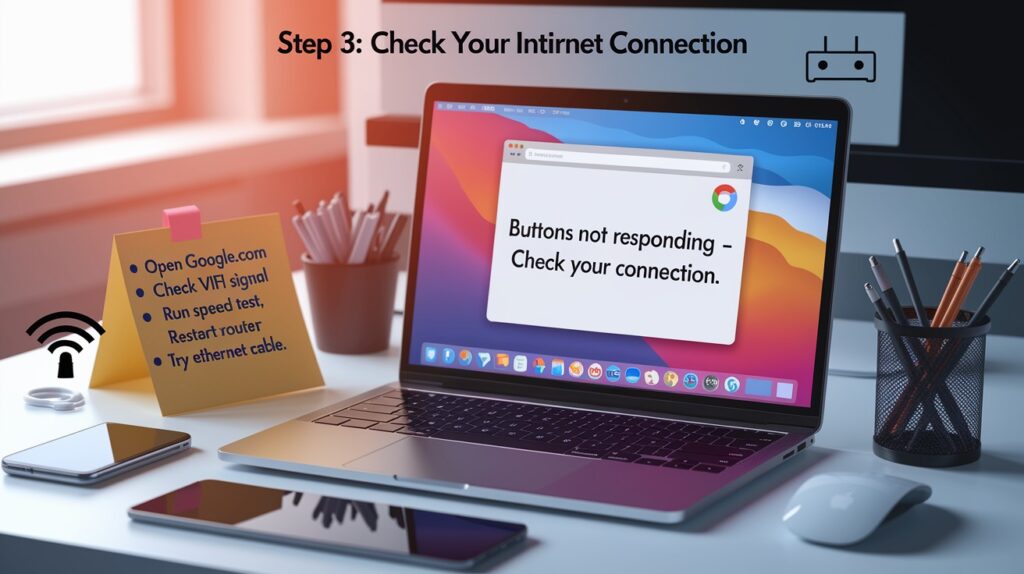Ibland är problemet inte alls Chrome. Din internetanslutning kan orsaka knappfel.