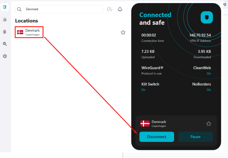 Att få enDansk IP-adressmed Surfshark är enkelt och tar bara några få tryck: