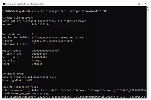 Funktioner i Windows File Recovery