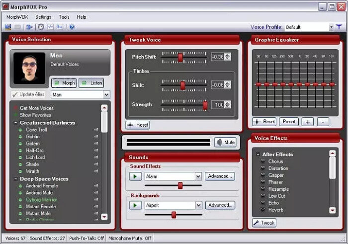 MorphVox integreras med många spel- och sociala medier-appar, som Skype, Twitch, Discord, Fortnite och många andra. Så oavsett om du är en spelare eller innehållsskapare är den här appen en fantastisk röstförändrande app att testa. Nybörjare som letar efter ett enkelt sätt att konkurrera med proffs i rymden tycker att det här verktyget är praktiskt, allt tack vare det förenklade gränssnittet som gör det enkelt att använda. Det är välkänt för utskriftskvalitetseffekter.
