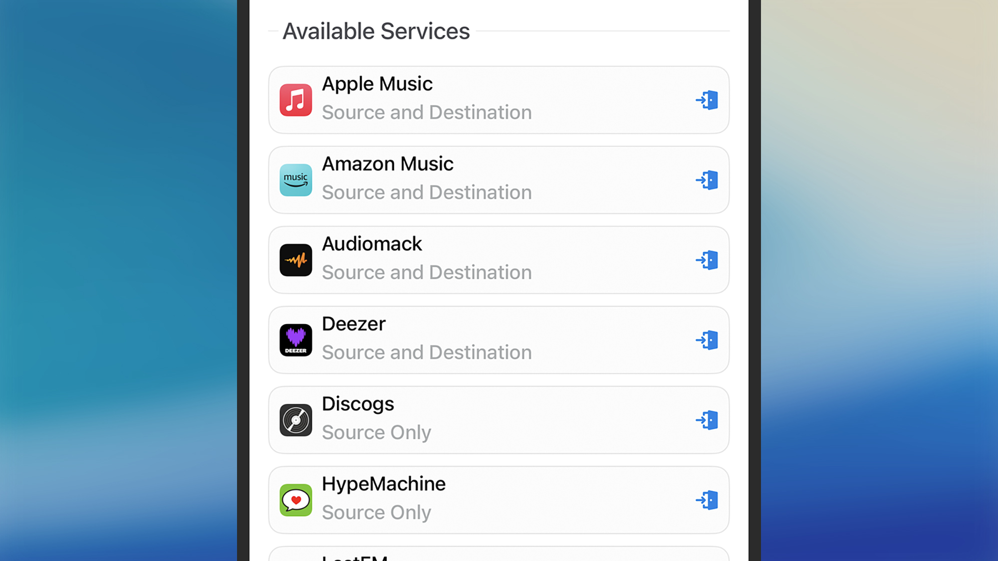 Detta är inte bara begränsat till Apple Music och Spotify, eller Apple Music och en annan tjänst. Tredjepartstjänsten Apple Music använder här är SongShift, som är tillgängligsom en separat appför iPhone och iPad. Du kan flytta musik mellan Apple Music, Amazon Music, Spotify, YouTube, Tidal, Pandora och mer genom att ange dina inloggningsuppgifter.