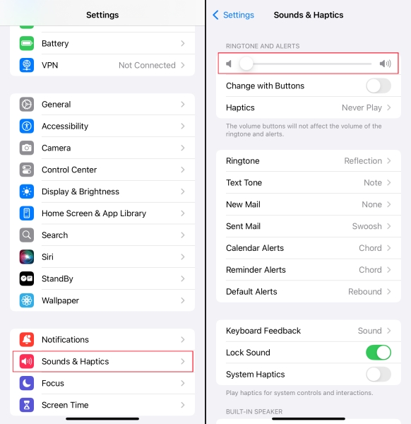 Steg 1.Gå tillInställningar > Ljud & Haptics..