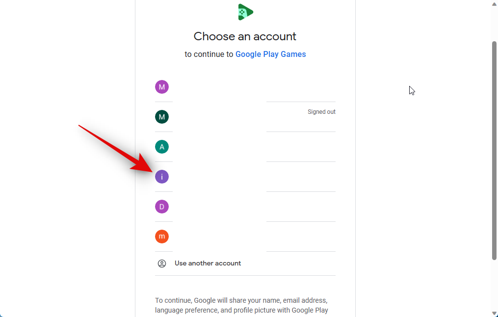 Du kan också klickaByt kontolängst ned om du vill använda ett annat Google-konto med Google Play Spel istället för det nuvarande.