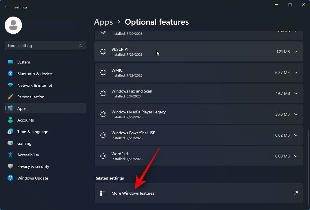 Bläddra till botten och tryck påFler Windows-funktioner.